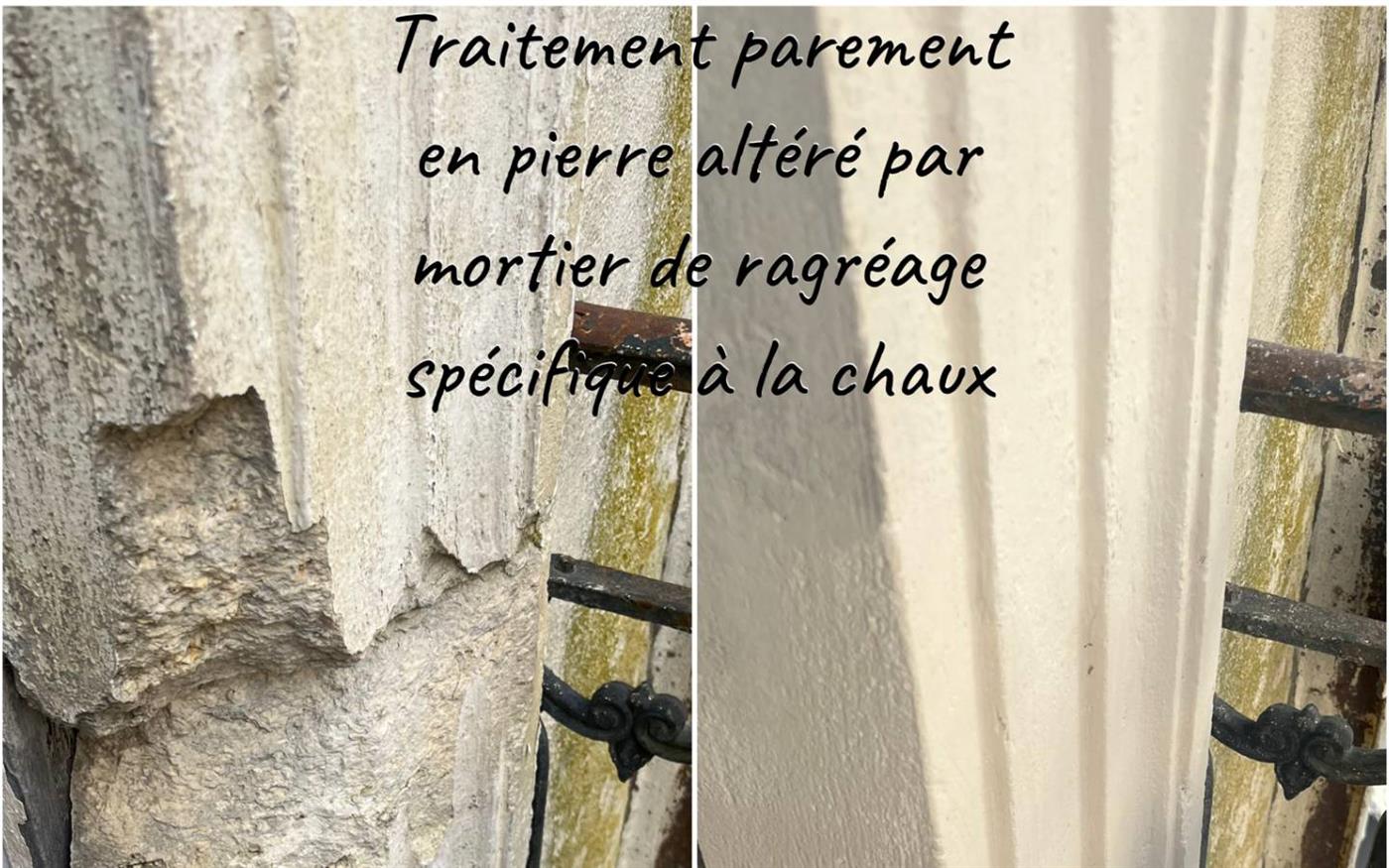 - Restauration de maçonnerie en pierre (nettoyage par micro-gommage ou autres, suivant altération du support, jointoiement à la chaux, réparation et /ou remplacement pierre de taille , traitement des fissures, enduit à la chaux…)
