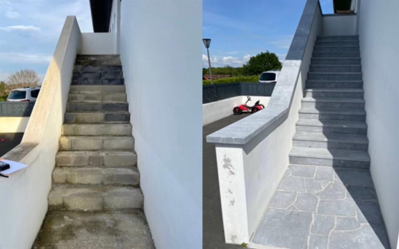 - Construction de nouvelles structures en pierre (dallage en pierre, parements verticaux, jardinière, cheminée, banc, balustrade, piliers de portail, muret bâti en moellons, ouverture de baie avec encadrement en pierre, appui de fenêtre, marches massives ou habillage).